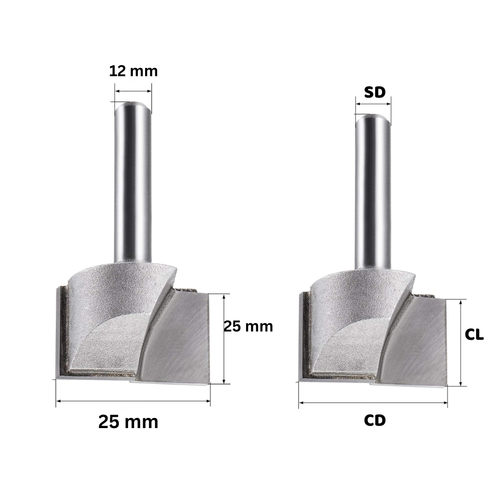 The T.C.T (Tungsten Carbide Tip) Straight BITS (Brazed) Cleaning Bottom Bits are precision CNC tools designed for high-performance drilling and cleaning applications. With their robust construction, these bits are ideal for machining tasks that require high durability and superior cutting efficiency. The tool features a brazed tungsten carbide tip that ensures optimal hardness and wear resistance, making it suitable for a variety of materials. The dimensions of the bit (C.D 25MM, CL 25MM, Z 2MM, and S.D 12MM) offer excellent control and precision during the machining process.